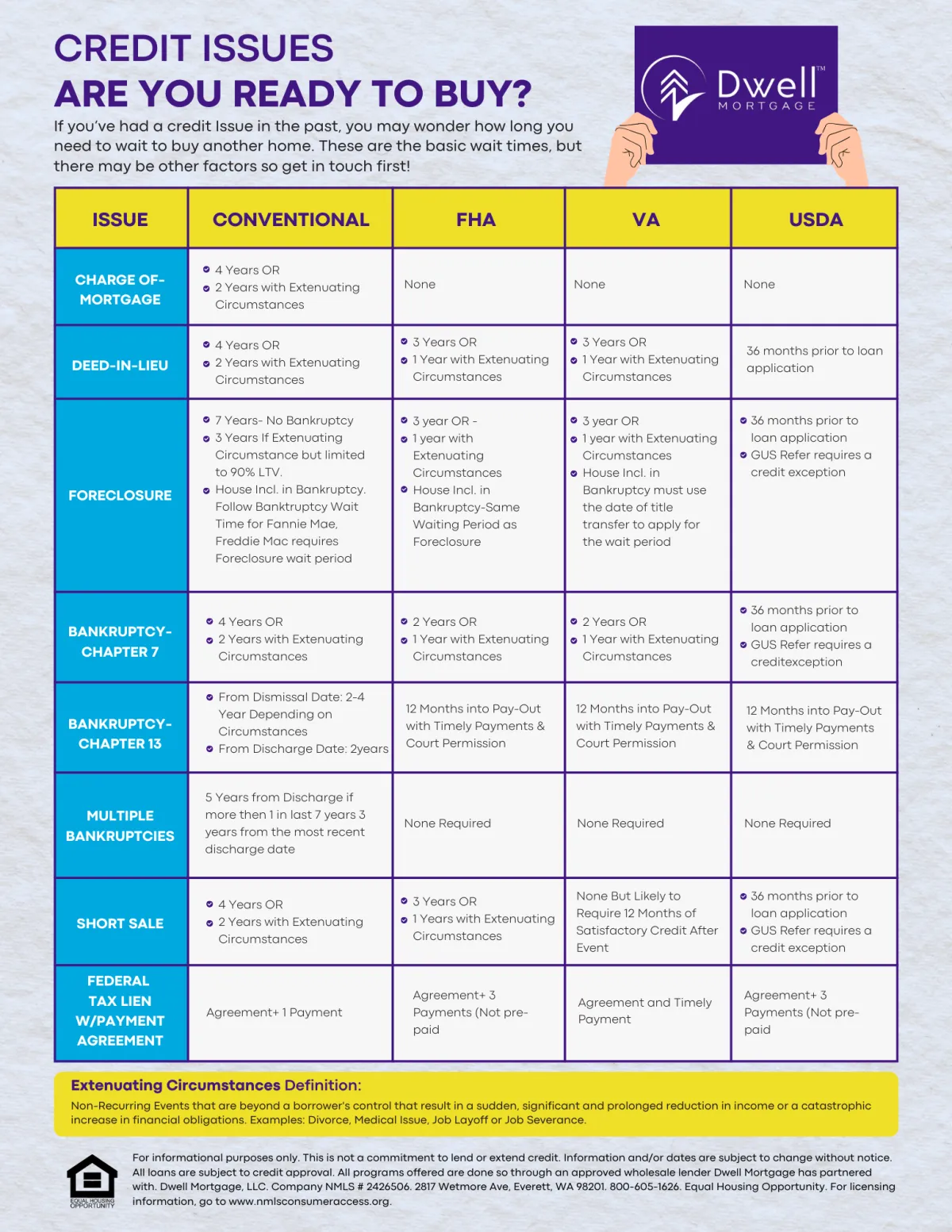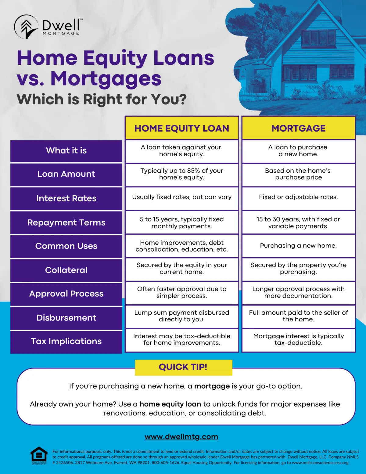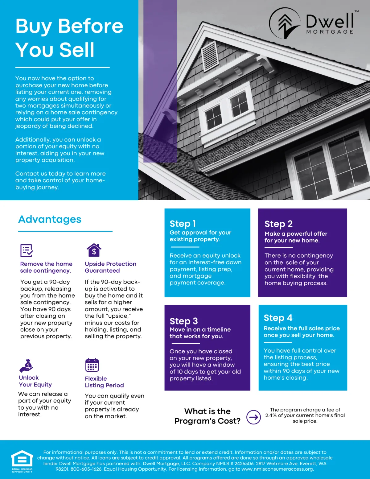 Dwell Mortgage, LLC. Company NMLS # 2426506. Headquarters: 2817 Wetmore Ave, Everett, WA 98201. 800-605-1626.